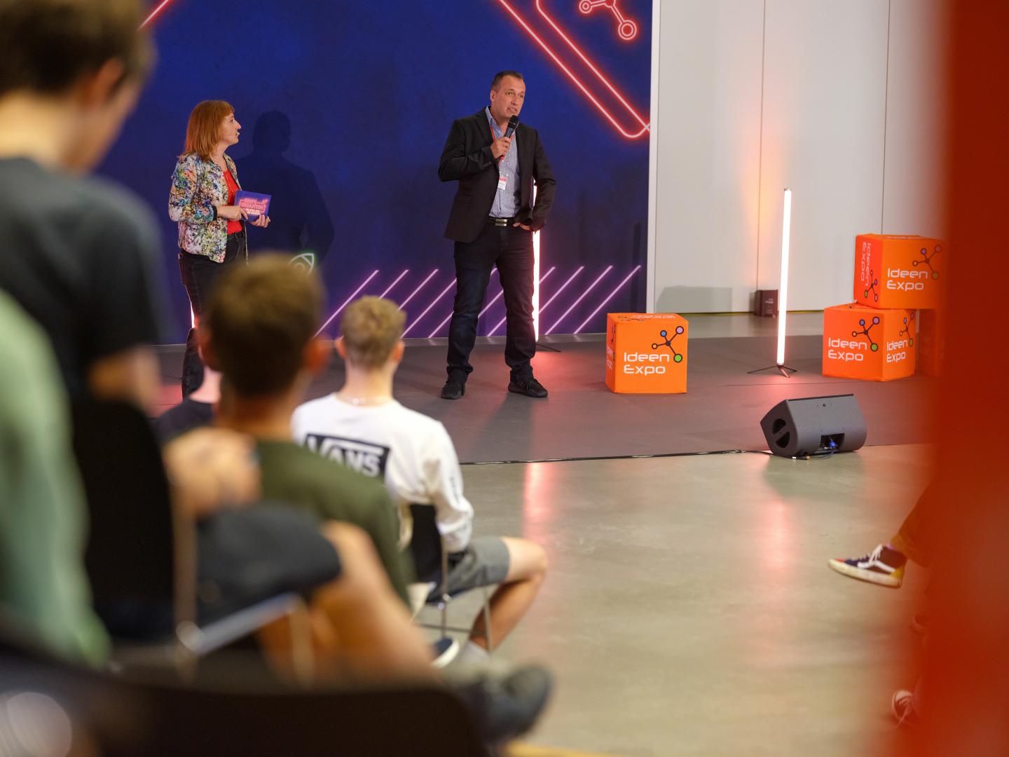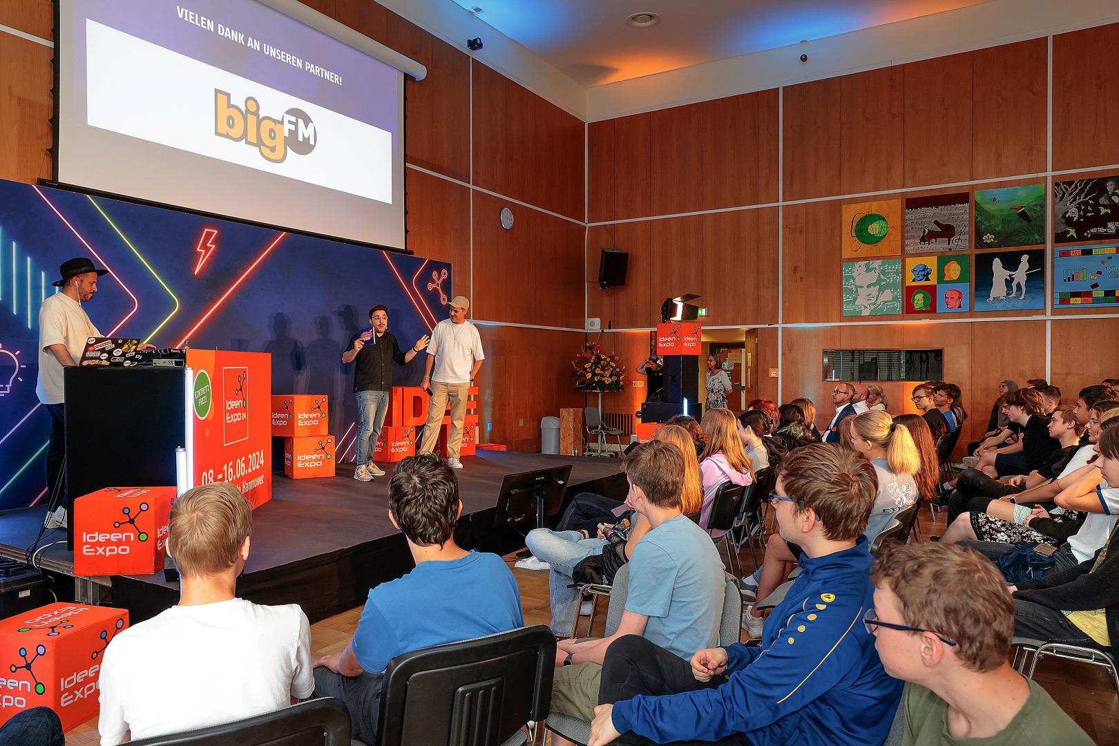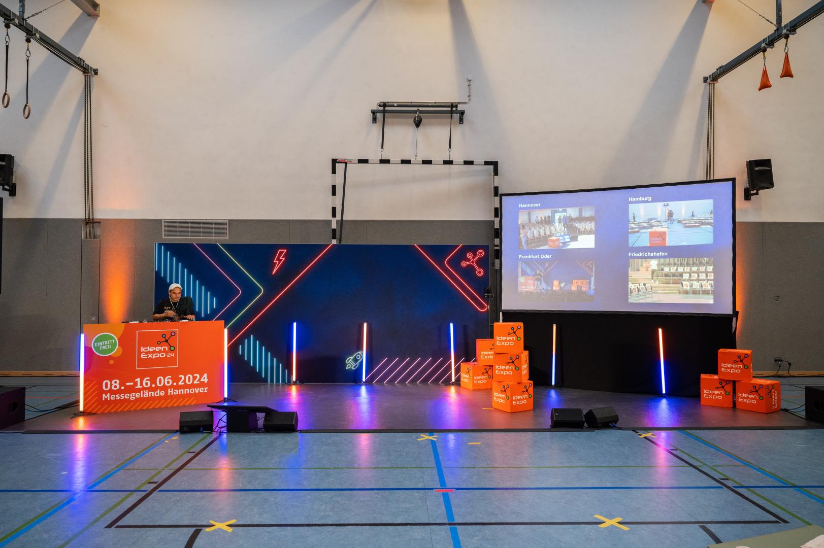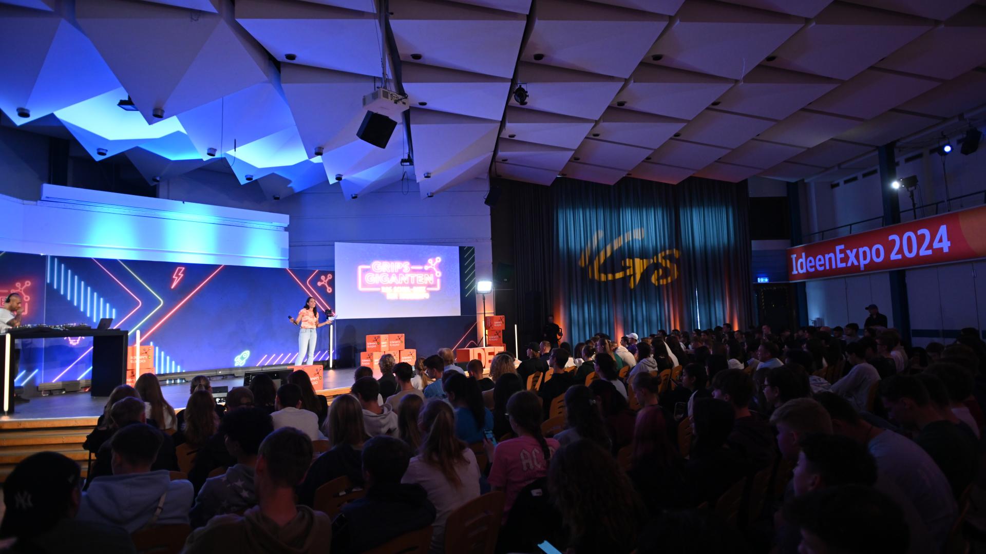 Das gab es noch nie: Vier Schulen aus vier deutschen Städten sind in einem MINT-Quiz in einer großen Live-Show gegeneinander angetreten. 36 Fragen aus den Bereichen MINT, Klimaschutz und Wirtschaft galt es beim großes Schul-Quiz der IdeenExpo am Freitag, 30. Juni, zu beantworten. Die Schülerinnen und Schüler aus Langenhagen, Friedrichshafen, Frankfurt (Oder) und Hamburg tragen nun offiziell den Titel „Grips Giganten“.