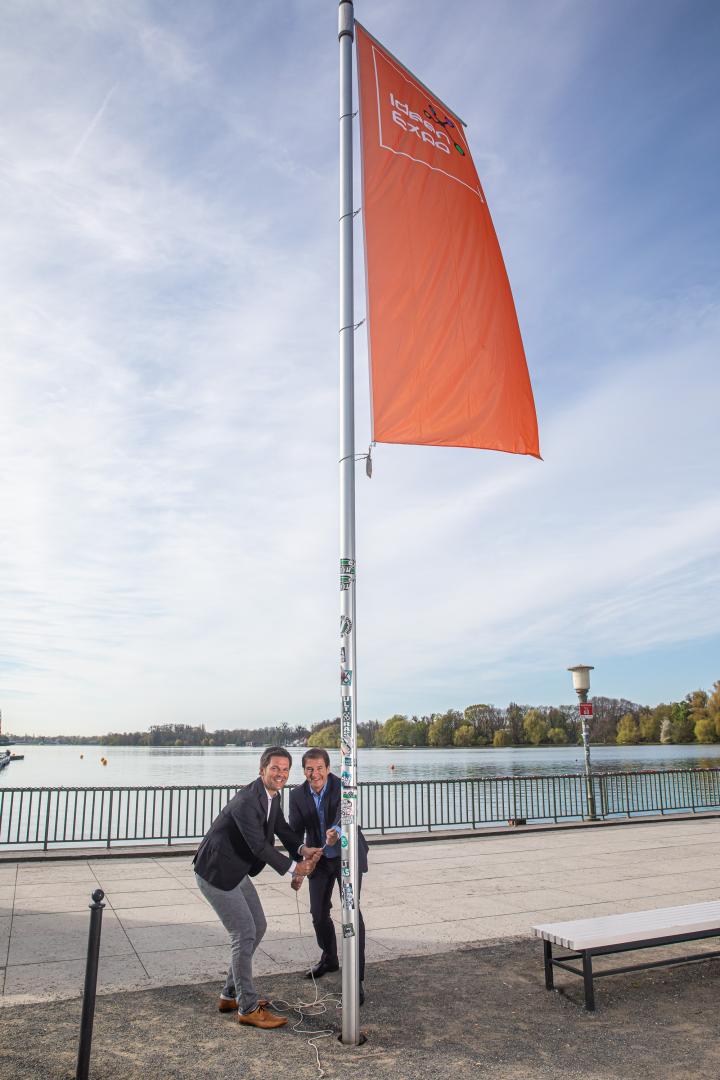 Zum Start der Kampagne setzten Dr. Volker Schmidt, Aufsichtsratsvorsitzender der IdeenExpo, Regionspräsident Steffen Krach und Hans-Christian Nolte, Geschäftsführer der Hannover Marketing und Tourismus GmbH,