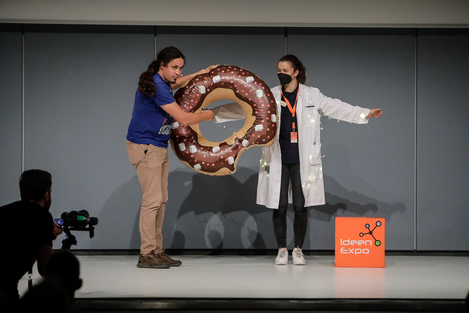 Hannover, 08.07.2022. Das Convention Center auf dem Messegelände in Hannover war gut gefüllt. Mit Spannung verfolgte das meist jugendliche Publikum am Freitag, 8. Juli, das große Finale des diesjährigen Science Slams der IdeenExpo. Am Ende kürte es Manuel Maidorn vom Max-Planck-Institut für Dynamik und Selbstorganisation in Göttingen knapp als Sieger. Mit seinem Vortrag „Die Macht des Donuts“, in dem er beschrieb, wie die Beobachtung von Synapsen funktioniert, sicherte er sich die höchste Punktzahl. Olaf Brandes, Geschäftsführer der IdeenExpo GmbH, überreichte die Siegerurkunden.
